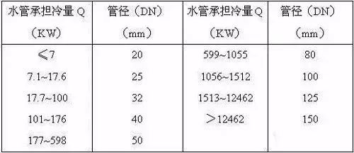 - 更大冷负荷需按流量公式精确计算(推荐流速 0.5-0.8m/s)。